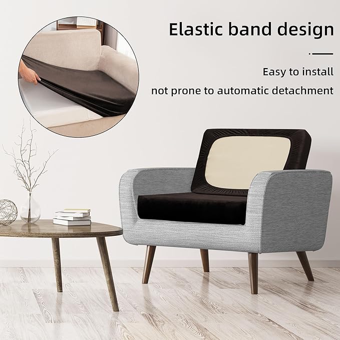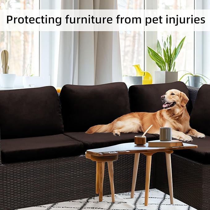 8Pcs Stretch Velvet Patio Cushion Cover,Fluffy,for Fall Outdoor Couch Cushion Cover Replacement,Washable Indoor Outdoor Cushion Slipcovers(Coffee,Cover Only)