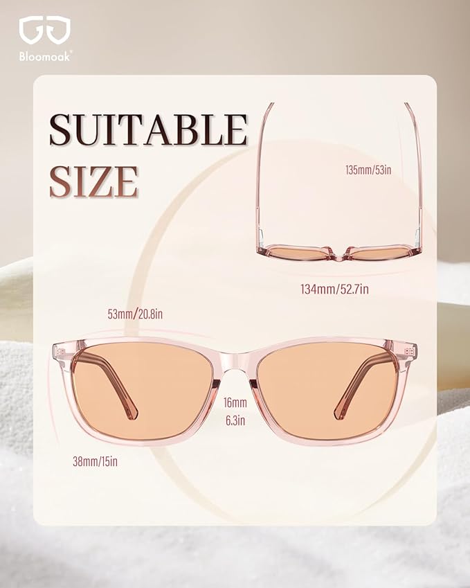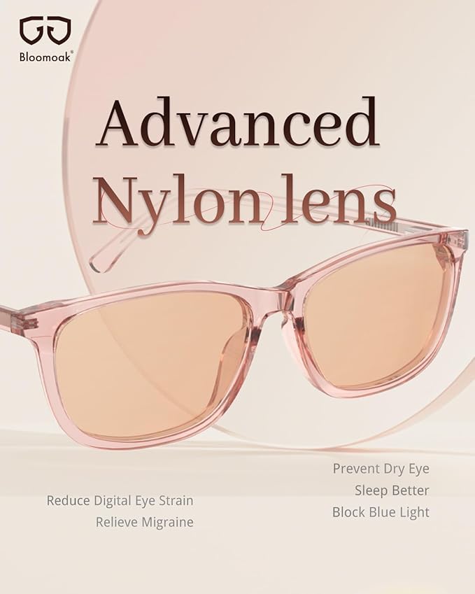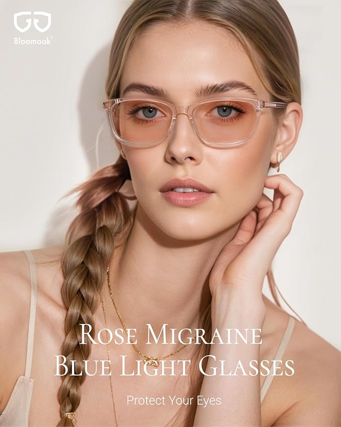 Bloomoak Rose Migraine Glasses, FL- Flex Light Sensitivity Relief Glasses for Fluorescent LED Glare,Photophobia, Eye Strain
