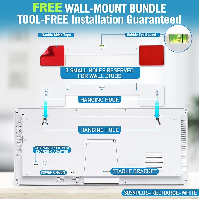 - [3-in-1 Life Command Center]The Rechargeable battery operated digital clock has 3 modes: timer, alarm, clock. You can just press mode button to change the mode, easy to operate. There are 3 alarm settings for wekdays, weekends, everyday to meet your different needs. As for the timer function, available timing period for 0-29 hr 59 min 59 sec to serve your needs.