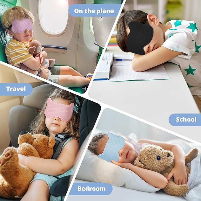 - 【Cute 3D Cat Face Design】Designed with playful cat ears, this kids sleep mask is perfect for children and teens aged 5-15. The cute design helps make sleep time exciting and fun, encouraging even the fussiest little ones to settle down for a good night's rest