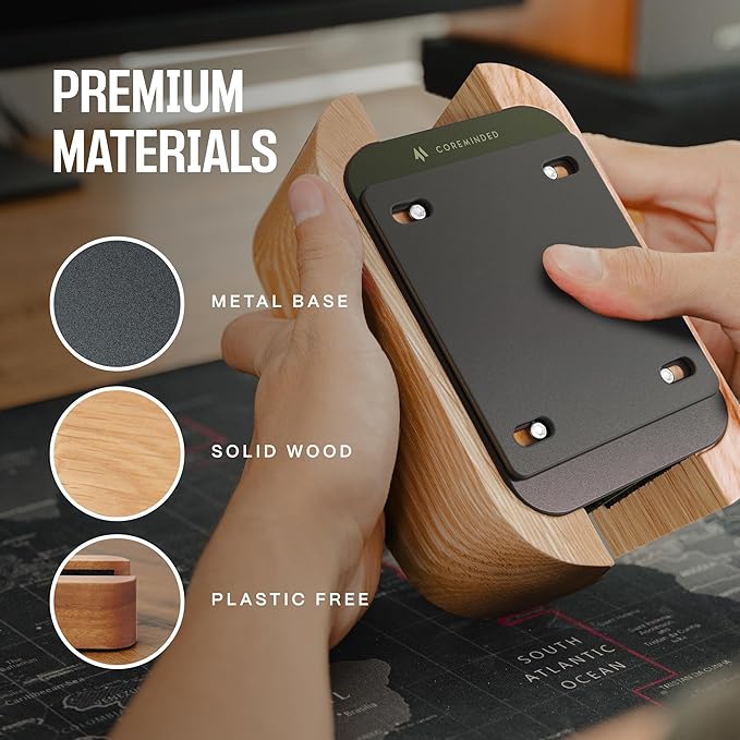 - DURABLE & STABLE - Crafted from solid wood and durable metal, the macbook holder ensures long-lasting sturdiness and strength. Its anti-skid silicone layer ensures a secure grip on any desk surface.
