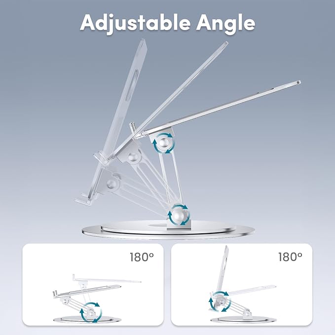 Lifelong Adjustable Laptop Stand with 360° Rotating Base, Ergonomic Computer Stand for Desk, Foldable & Portable Laptop Riser Holder Fits All MacBook, Laptops 10-16 Inches, Silver