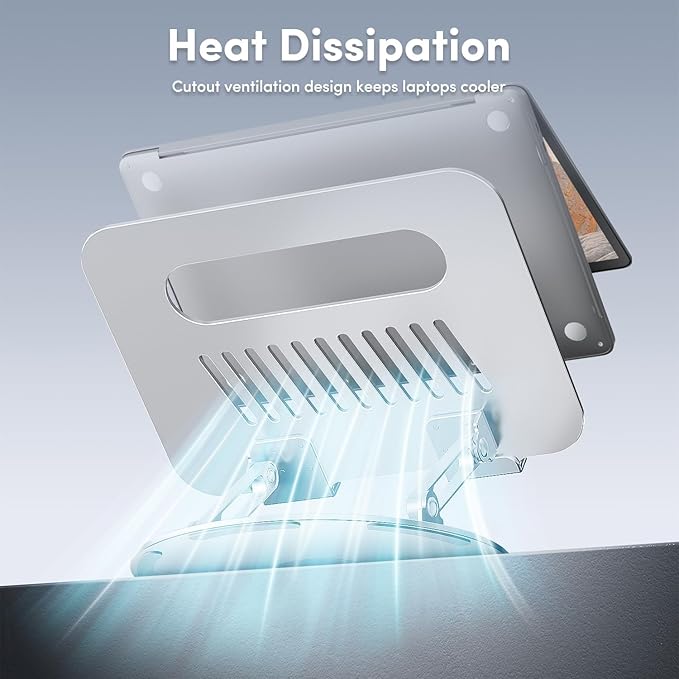 - Heat Dissipation: The laptop stand panel is cutout to enhance air circulation for optimal heat dissipation and to prevent the laptop from overheating. Anti-slip silicone protects your laptop from scratches and slips and keeps it stable.