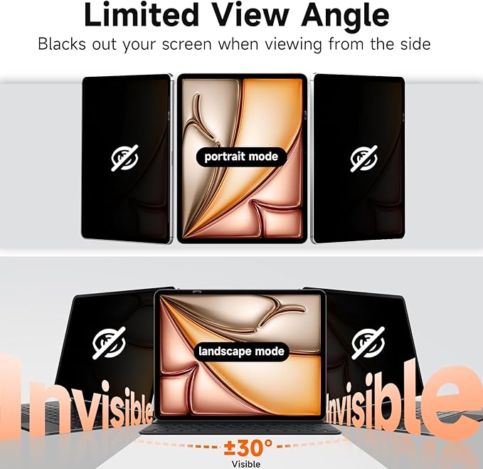 - 【Enhanced 360°Privacy Protection】Using the world's unique patented optical technology of ultra-fine louvers, give your new iPad best 4-Way anti-peep protection. Limits viewing angle to only +/- 15 degrees, with this privacy film in any situation you do not have to worry about the next person to read your information. Especially suitable for those who pursue super privacy protection!