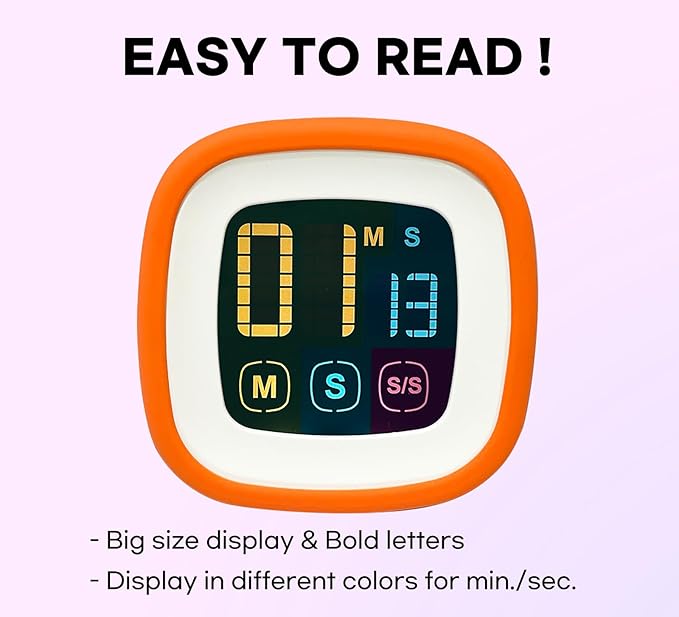 - 【 Easy to read 】 This digital timer features 2.35 inch Large Screen, bold colored digits for Minutes & Seconds and a Bright backlit display. It makes easy to capture the time clearly even from a distance. Especially recommended for kids & seniors.