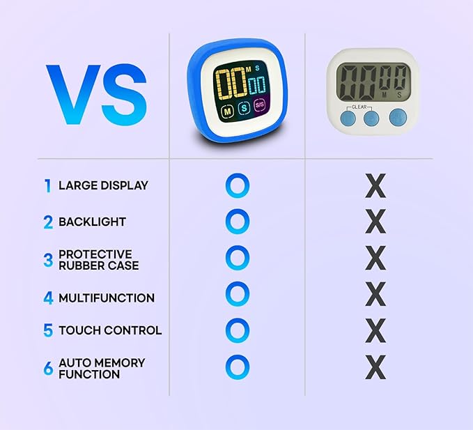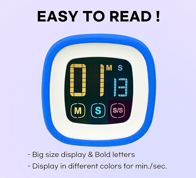 - 【 Easy to read 】 This digital timer features 2.35 inch Large Screen, bold colored digits for Minutes & Seconds and a Bright backlit display. It makes easy to capture the time clearly even from a distance. Especially recommended for kids & seniors.