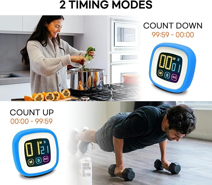 - 【 Easy to use 】 Very easy to set up and use with just 3 touch keys. Press & hold the ‘M’ key (Minutes) or ‘S’ key (Seconds) to fast forward set time, and press these two keys (‘M’ and ‘S’) at the same time to reset time to 00:00. You can also pause and restart the countdown/up by pressing ‘S/S’ key ( Start/Stop ) during the countdown/up.