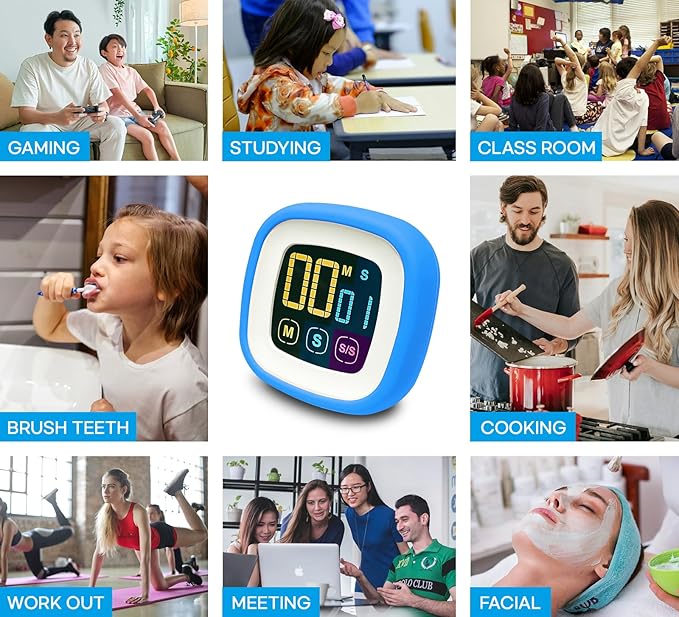 - 【 Versatile usage 】 This multi-functional timer is perfect for kids or whole family, No ticking sound make kids to focus on their reading, studying, homework at home and in the classroom. It is an ideal timer for cooking, housework, fitness, games, meetings, fitness, office work and other activities. A great gift for both adults and kids !