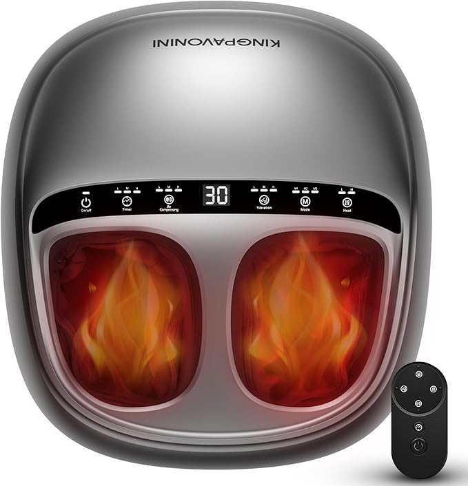 - [Experience a Full-Foot Massage with Warmth] KingPavonini shiatsu foot massager adds airbags at the ankles and toes, truly covering your feet comprehensively, not just the soles. The foot massager for plantar fasciitis provides warmth for cold feet, with a choice as well of low or high warming (110°F/119°F). Whether elderly people or office workers standing or stiff for a long time, they can enjoy professional massages at home.