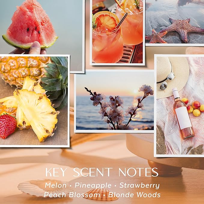 - SUNLIT SAND – A TROPICAL ESCAPE: Immerse yourself in the sweet, sun-kissed air of a perfect beach sunset with this inviting blend of melon, pineapple, peach blossom, and soft blonde wood. Like a leisurely stroll along the shore, this blush-colored candle captures the essence of warm summer evenings, tropical breezes, and the calming beauty of a setting sun, creating the ideal ambiance for relaxation and reflection all season long.