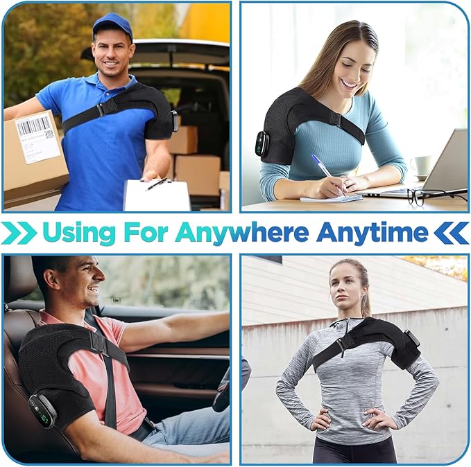 - 【Cordless Shoulder Reliever for On-the-Go Use】 With a built-in 5000mAh rechargeable battery, this wireless shoulder brace lets you enjoy pain relief anytime, anywhere—whether at home, at work, on a drive, or while traveling. Delivers up to 2 hours of continuous use and comes with a Type-C cable for convenient charging