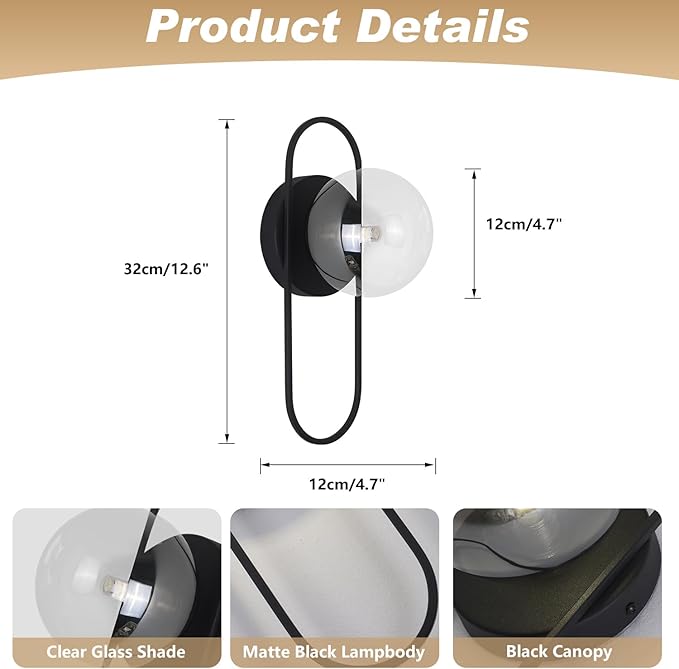 - Globe Wall Sconce with Black Oval Frame: The mid century modern sconce light featuring a matte black 9.4"*7.1" oval frame, surrounding a 4.7” clear bubble glass globe lampshade and black plate, simplicity and classic, add a stylish look while illuminates your room to create the perfect atmosphere. Ideal for any style, from modern to rustic