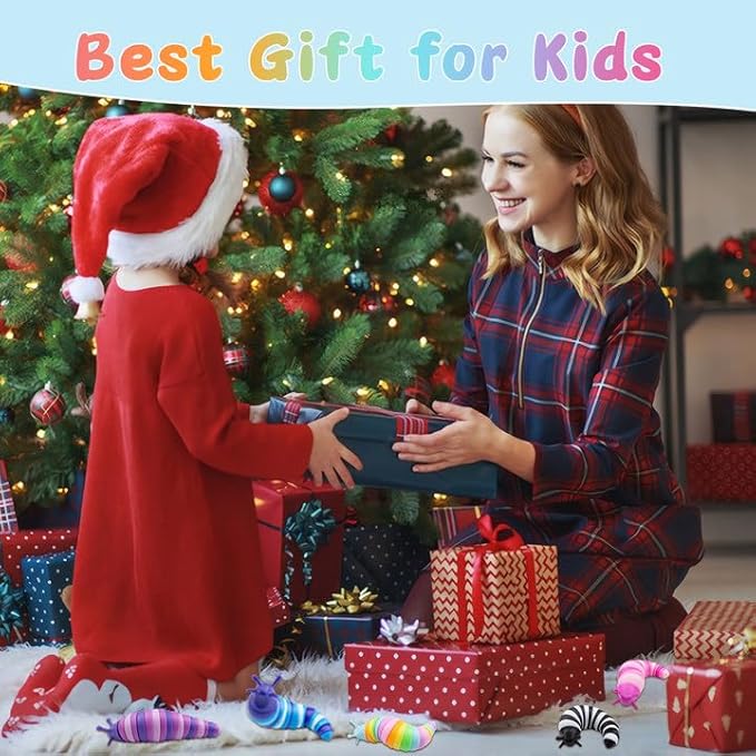 Cevioce 16 PCS Fidget Toys Slug for Adults Anxiety Sensory Toys for Party Favors Toddler Fidget Toys Age 3-4 ADHD Autism Toys for Anxiety Stress Christmas Stocking Stuffers Gifts for Boys Girls