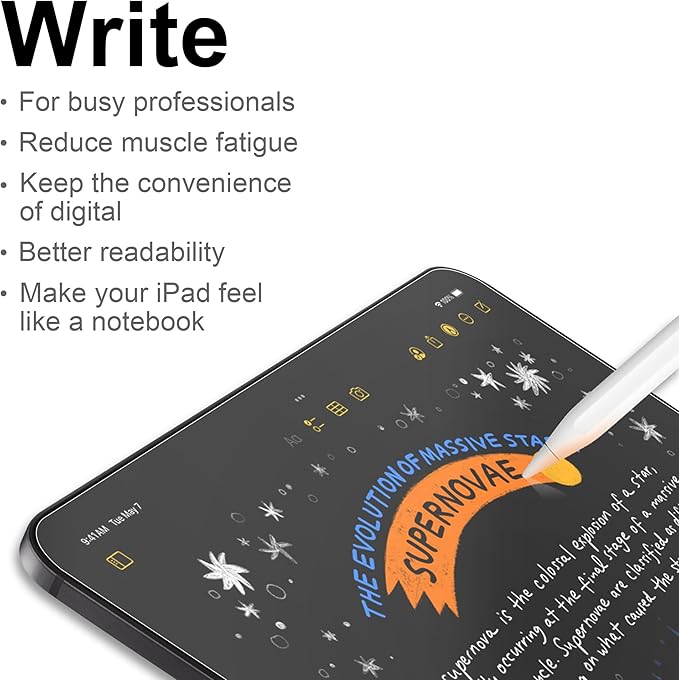 - Perfect Fit for iPad Pro 11 inch (2024, A2761/A2762/A2763)Screen Protector: Mimics the feel of writing on real paper, ideal for students, business professionals, and artists drawing and writing