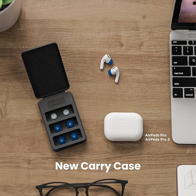Foam Masters Ultra-Premium Memory Foam Ear Tips for AirPods Pro 1st & 2nd Gen | 3 Pairs | New Ver. | Secure Fit | Super Comfort | Better Noise Cancel | Replacement Buds (Small, Blue)