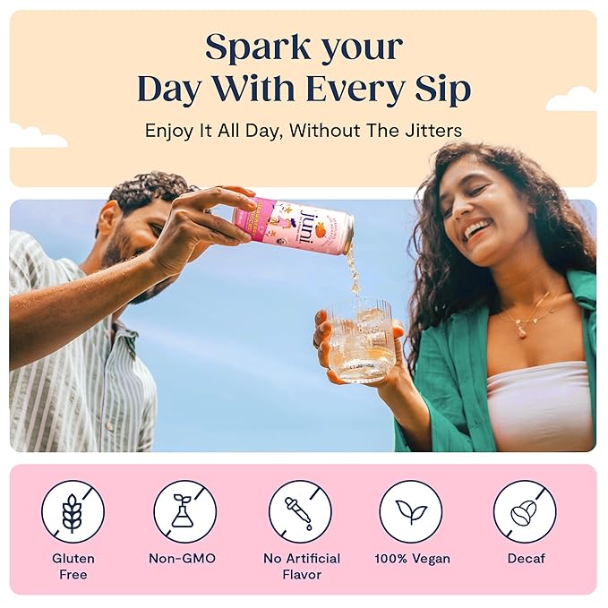 - Adaptogenic Super-Blend - Dive into a bubbly fusion of Ashwaganda, reishi mushroom, lion’s mane, acerola cherry, and green tea. Juni is an invigorating drink crafted to combat stress, calm the mind & support overall well-being