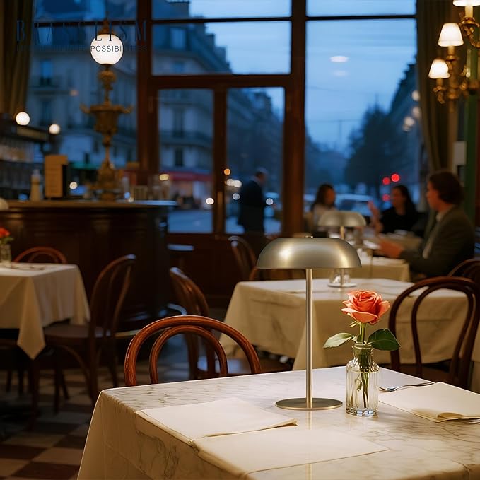 - Elegant Brass Finish – Stylish for Home & Business Crafted in a luxurious gold-tone metal, this lamp adds a touch of modern minimalism and upscale charm. Whether in a restaurant, Airbnb, or at home, the warm glow enhances food presentation and elevates any setting.