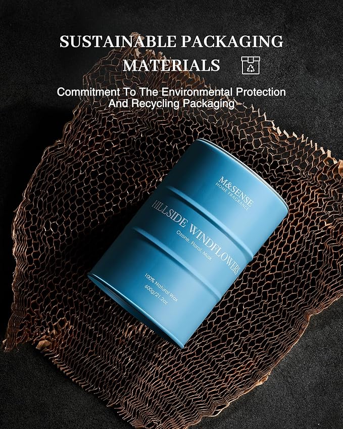 - š Sustainable Material - M&SENSE candles are all crafted with the finest and most natural ingredients. Using high-end vegetable wax and unbleached cotton wicks in a reusable and recyclable tin. Packaged in recycled honeycomb paper and cardboard box for a more sustainable future.