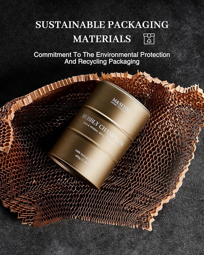 - š Sustainable Material - M&SENSE candles are all crafted with the finest and most natural ingredients. Using high-end vegetable wax and unbleached cotton wicks in a reusable and recyclable tin. Packaged in recycled honeycomb paper and cardboard box for a more sustainable future.