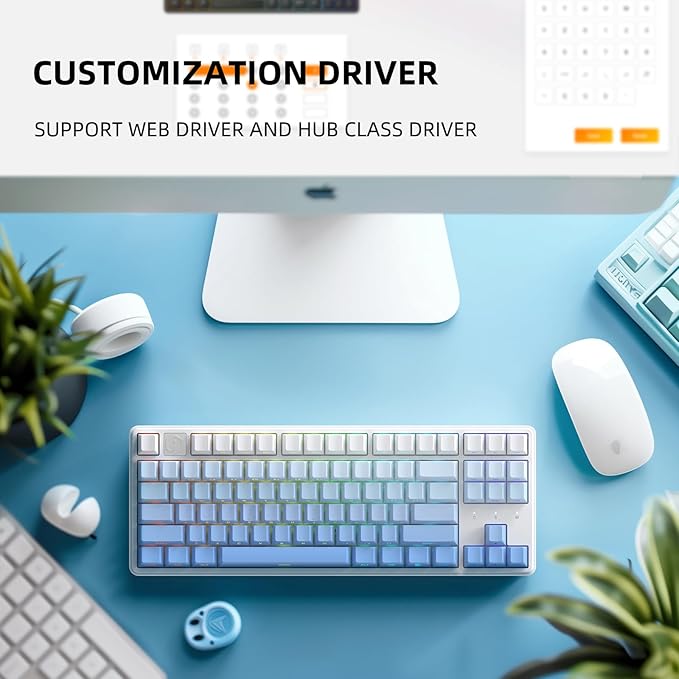 - 【Web Driver & One-stop HUB Driver】:IROK NA87Pro gaming keyboard supports Web Driver & One-stop HUB Drive,simple operation and convenient management,reduce cumbersome installation steps
