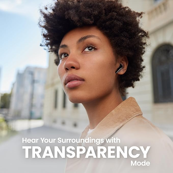 - Transparency Mode - When you switch to "Transparency Mode," the wireless bluetooth earbuds' noise cancelling turns off and you are able to clearly hear the ambient sound through the in ear headphones