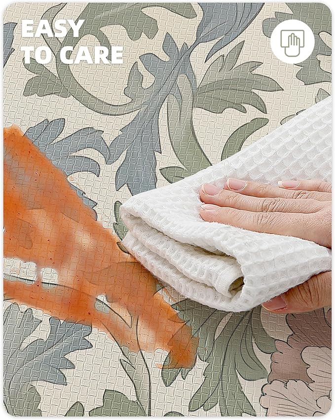 - Easy to Clean: The oil and water resistant surface of our kitchen mat makes cleaning a breeze. Simply wipe away spills with a damp cloth or use a handheld vacuum for quick touch ups. This hassle maintenance saves you time and energy, keeping your kitchen looking spotless with minimal effort.
