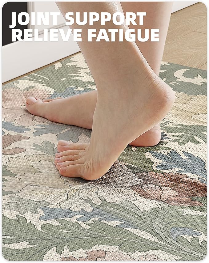 - Anti Fatigue Comfort & Floor Protection: Made from premium soft PVC foam,our kitchen floor mat provides exceptional cushioning support to reduce fatigue during long hours of standing. Not only does it offer comfort for your feet, but it also protects your floors and utensils from damage caused by dropped objects, making it a practical and functional addition to your kitchen.
