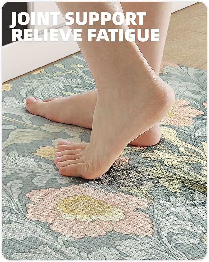 - Anti Fatigue Comfort & Floor Protection: Made from premium soft PVC foam,our kitchen floor mat provides exceptional cushioning support to reduce fatigue during long hours of standing. Not only does it offer comfort for your feet, but it also protects your floors and utensils from damage caused by dropped objects, making it a practical and functional addition to your kitchen.
