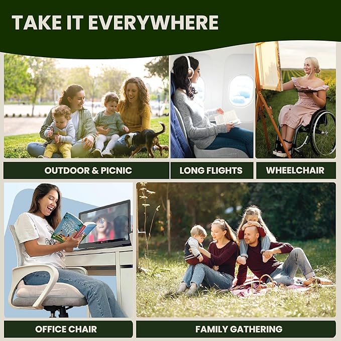 - PORTABLE DESIGN WITH BUILT-IN HANDLE Take it anywhere with the built-in handle. This computer chair cushion fits perfectly on office chairs, car seats, gaming chairs, and wheelchairs — delivering consistent ergonomic support and pressure relief in any setting.