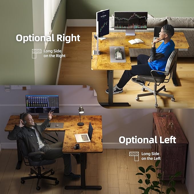 - Flexible L-Shaped Design: This l shaped standing desk offers versatile installation options, allowing you to choose between left or right installation based on your personal preference. It seamlessly fits into any room, whether it’s an office, study, or living room. The L-shape not only saves space but also creates a clean, organized, and stylish workspace.