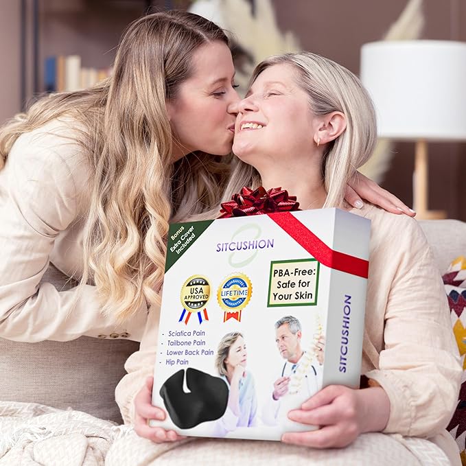 - A MEANINGFUL GIFT FOR COMFORT & WELLNESS Show you care about their health by gifting the ergonomic seat cushion. Perfect gift for seniors, drivers, or anyone who sits for long hours. Whether recovering from back pain or seeking everyday comfort, this office chair seat cushion brings thoughtful relief and improved well-being.