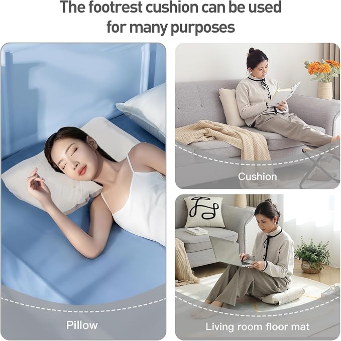 - REMOVABLE THICK COTTON CUSHION FOOTSTOOL: This detachable cotton cushion is thick and soft, and it's fantastic. Whether you use it to relax your feet or sit on it to rest, you can feel very comfortable. The folding ottoman is perfect as a foot stool on its own, or as an ottoman when you're lying on a sofa or lazy chair,increasing your relaxation and comfort.
