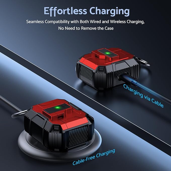 - 【Convenient Charging & Portability】The case supports both wired and wireless charging for your AirPods 4 case. The front LED remains visible to show the charging status. An included portable carabiner allows you to conveniently take your AirPods 4 case with you during outdoor activities like climbing, hiking, and travelling.