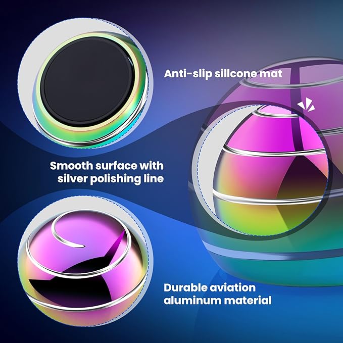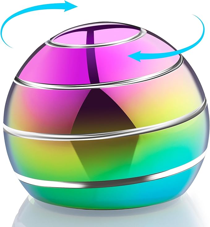 - Premium Quality & Durable Design -- Made from solid aluminum with a durable anodized surface, this fidget spinner toys features a bright, colorful finish that stands out. It’s well-balanced, similar in size to a golf ball, and feels satisfying to hold and spin, making it a long-lasting and enjoyable fidget tool.