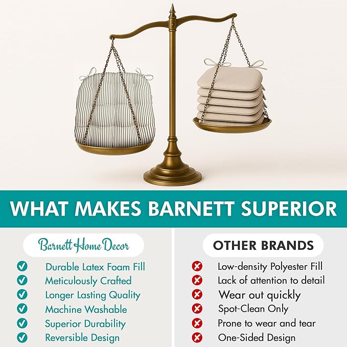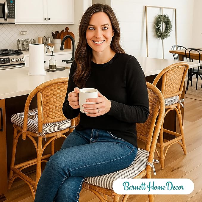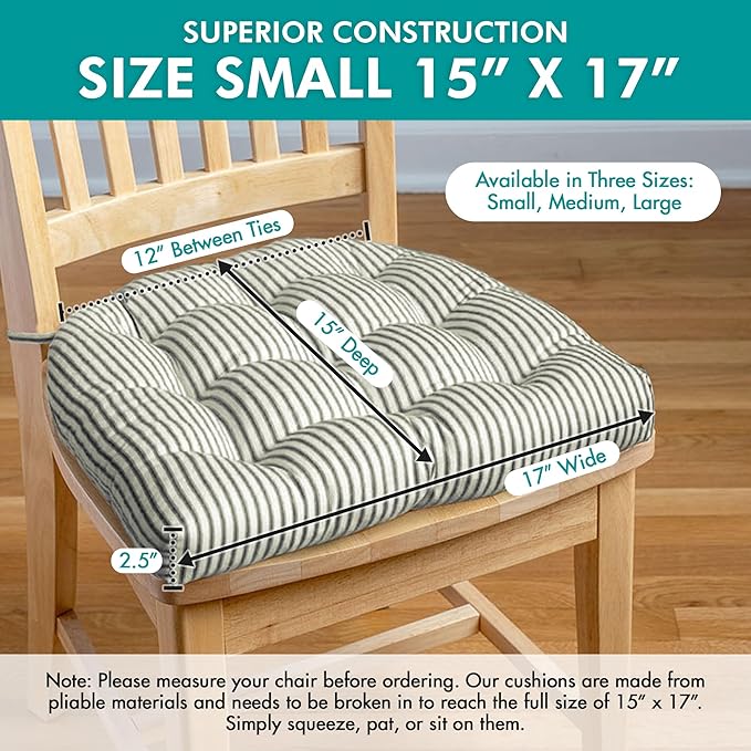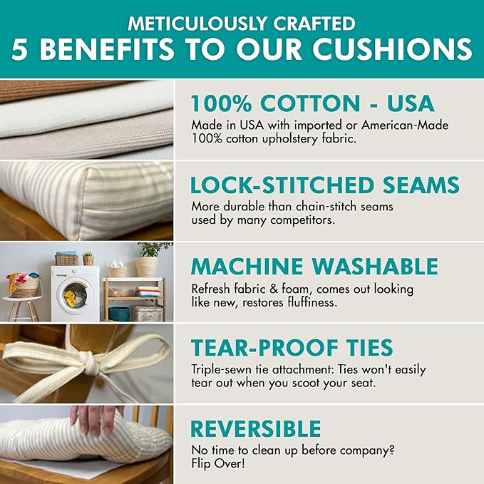 - MACHINE WASHABLE & REVERSIBLE - Ticking Stripe Dining chair cushions reverse to same fabric on both sides.