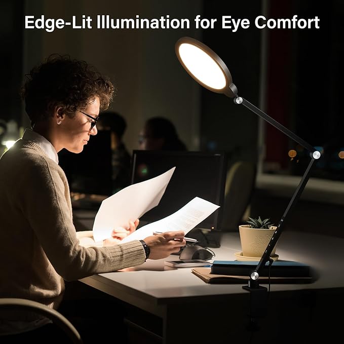 - Space-Saving Desk Lamp with Clamp & Auto-Schedule: The versatile desk lamp with clamp securely attaches to surfaces up to 2.5" thick without damaging finishes. Set the 30/60-minute timer for focused study sessions or bedtime reading. Memory function preserves your preferred brightness and color settings between uses – no daily reconfiguration needed.
