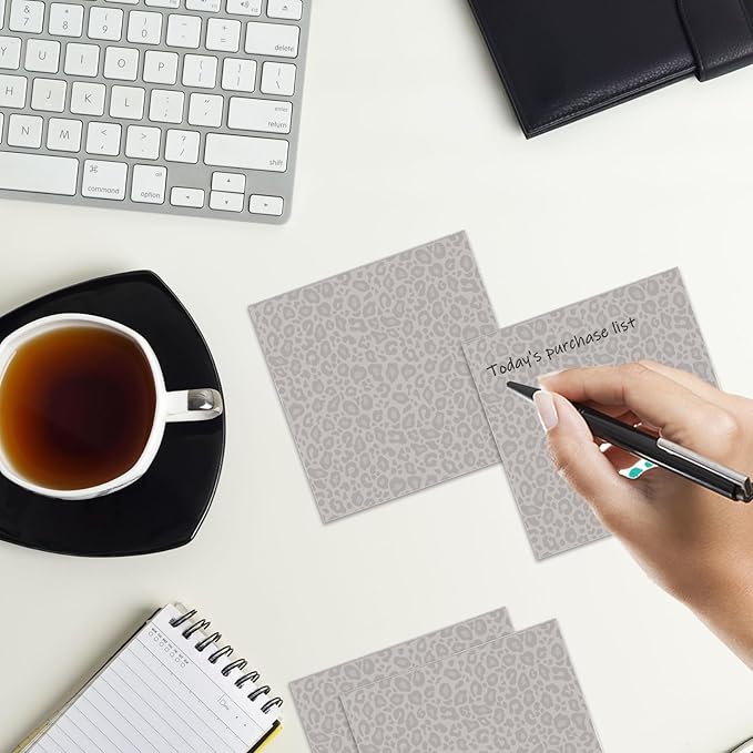 Sticky Notes 3x3 Inches, 2 Pads Cute Colorful Self-Stick Note Pads, Easy to Post for Home, Office and Daily Life Organization Luxury Black Leopard