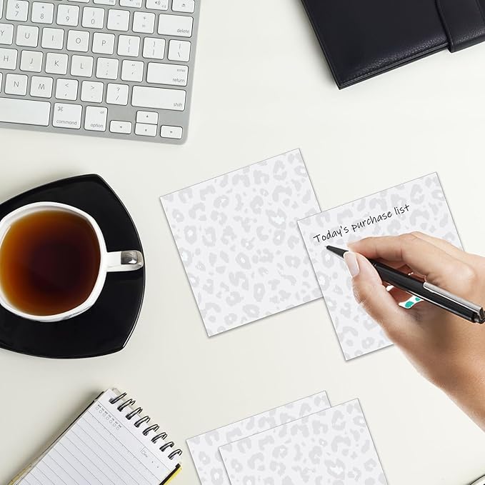 Sticky Notes 3x3 Inches, 2 Pads Cute Colorful Self-Stick Note Pads, Easy to Post for Home, Office and Daily Life Organization Gery Leopard