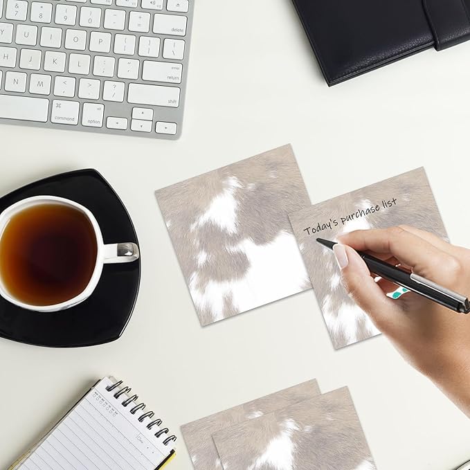 Sticky Notes 3x3 Inches, 2 Pads Cute Colorful Self-Stick Note Pads, Easy to Post for Home, Office and Daily Life Organization Retro Cowhide