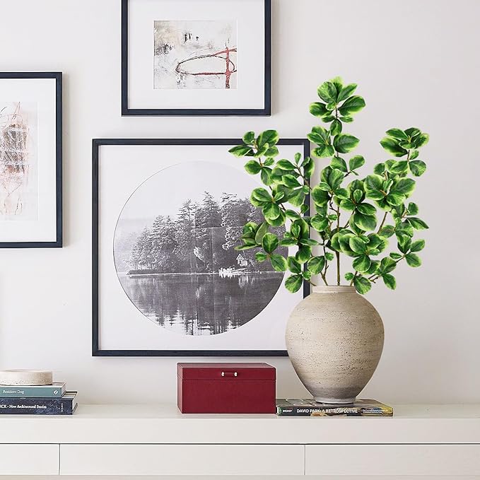 - 🌿✨【PREMIUM MATERIAL】The artificial greenery stems leaves branches are made of high quality silk and environmentally friendly plastic. Inside the stem is durable iron wire. It enables you to bend and adjust the stem according to you needs. Each leave is durable and not easy falling off.