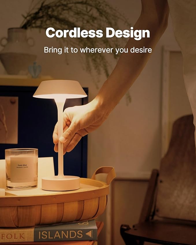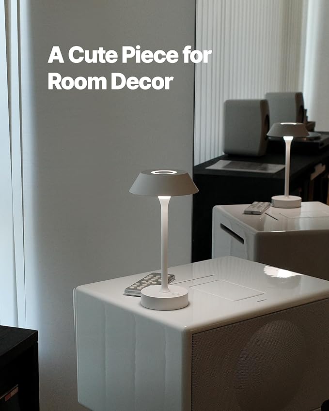 - Premium Quality: ELVA lamp features a durable all-metal construction that combines sturdiness and elegance. With no installation required, simply charge, place, and use. The non-slip base keeps it stable on any surface, while the touch control makes operation easy—tap to turn on/off or switch color temperatures, and press and hold to adjust brightness. Besides, its cordless, rechargeable design ensures effortless portability, bringing light wherever you need it