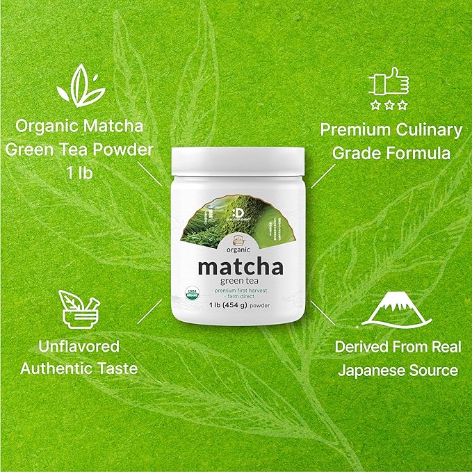 Organic Matcha Green Tea Powder, 1 lb (454g) | First Harvest, Culinary Grade | Japanese Sourced Cafe Mix | Zero Sugar, Keto Friendly, Non-GMO, Vegetarian