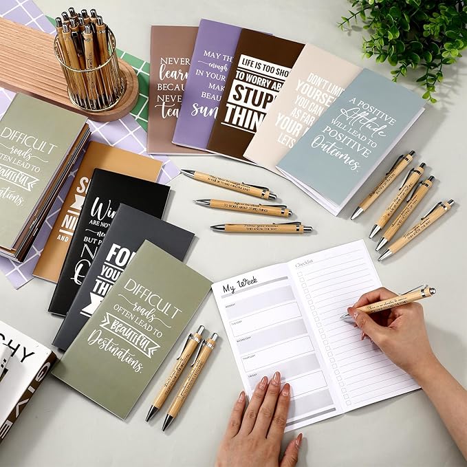 - Organizational Excellence: you will receive 20 weekly planners and 20 bamboo ballpoint pens, printed with different motivational quote words, suitable for daily or office use, and can also be as gifts to colleagues, employees, students, teachers, nurses and more
