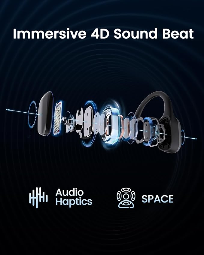 - Open Ear Bone Conduction Headphones: HaptiFit Terra features Open-Ear design for safety and comfort and Mojawa's Audio-Haptics technology for bud-free listening experience. It delivers an electrifying 4D workout soundtrack, and presents four unique sound effects, effortlessly adaptable to any scenarios