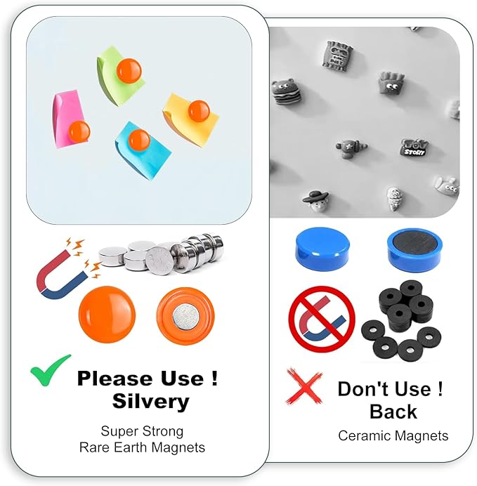 - Super Strong Magnets: Unlike the traditional aluminum frame whiteboard, our glass board needs stronger magnetic power. For the best experience, use magnets that we have provided you with super strong magnets (Not applicable: fridge magnets and normal black magnets)