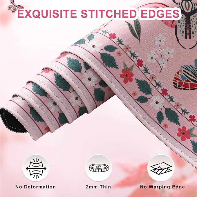 iCasso Pink Desk Pad Mat, XXL Large Mouse Pad, Desk Matt for Desktop, Anti-Slip Big Mousepad with Stitched Edges, Mouse Mat for Computer(Pink)