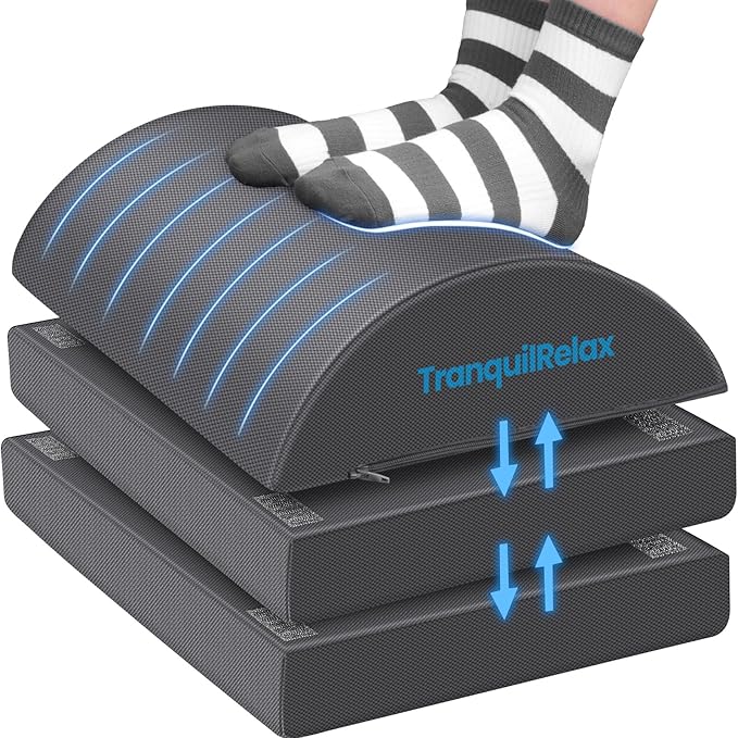 - Versatile Design: Use it under your desk for ergonomic leg support, under your knees for extra comfort, or flip it into a rocking foot rest for relaxation. This compact, adaptable foot rest brings comfort wherever you need it