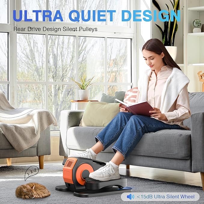 - QUIET OPERATION: This under-desk elliptical is equipped with the latest quiet system to ensure a noiseless workout even at high speeds without disturbing coworkers or family members. Perfect for home and office use. Its compact design and portable features allow you to work out anytime and anywhere
