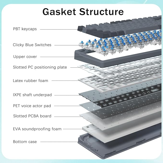 - ใ๐๐ฎ๐๐ธ๐ฒ๐ ๐ฆ๐๐ฟ๐๐ฐ๐๐๐ฟ๐ฒ ๐๐ถ๐๐ต ๐ฆ๐ผ๐๐ป๐ฑ ๐๐ฏ๐๐ผ๐ฟ๐ฏ๐ถ๐ป๐ด ๐๐ผ๐ฎ๐บ๐ใ- GASKET structure ensures the highest quality assurance with great durability and stable performance. Equipped with 4 layers of thicker sound-absorbing foams, silicone dampener pad, which reduces 40% noise and removes 80% hallow sound. Bringing nice sounding, natural and clear feedback, no more cavities noise.