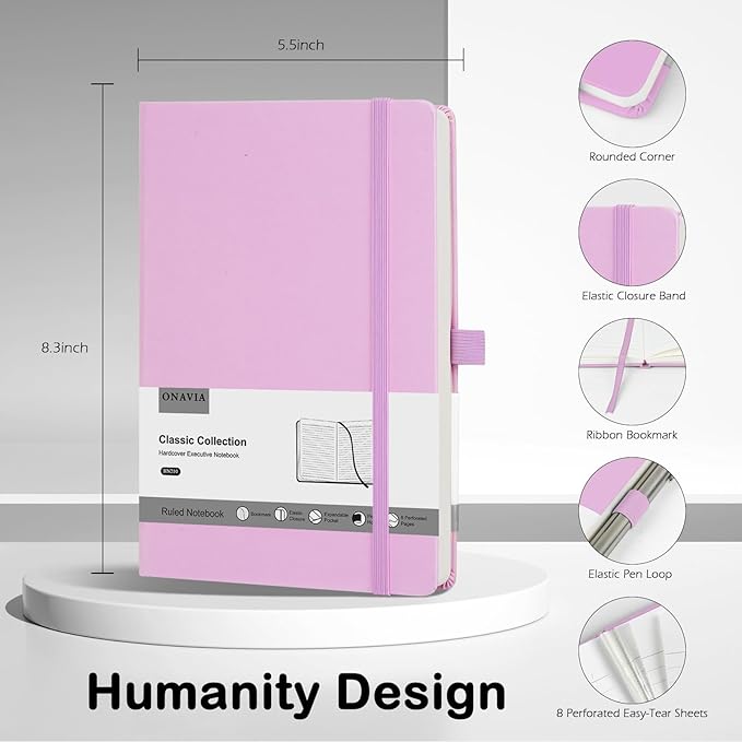 - 【Hardcover Notebook Journal】ONAVIA 5.5×8.3 inches standard lines notebook features a sturdy and durable hardcover, 80sheets, 160 pages, perfect as gift
